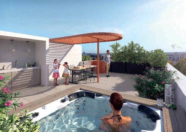 Les espaces extérieurs privatifs viennent prolonger chaque logement, avec des loggias équipées de placards extérieurs ou encore des toits-terrasses ombragés, offrant un cadre exceptionnel pour profiter pleinement du climat méditerranéen.