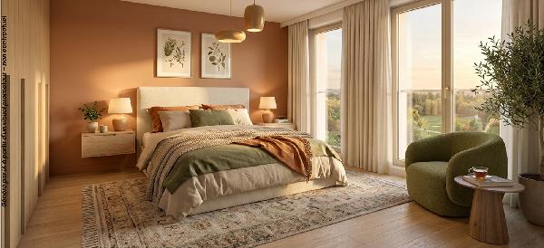 Les intérieurs révèlent des agencements optimisés et fonctionnels. Les pièces de vie, spacieuses et lumineuses, s’ouvrent largement grâce à de grandes baies vitrées donnant sur l’extérieur. Les prestations renforcent le confort : cuisine et salle de bain aménagées, volets roulants motorisés, réseau de chaleur urbain, visiophone.