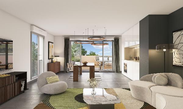 Les 168 logements neufs, allant du studio au 5 pièces, sont pensés pour optimiser chaque mètre carré. Les zones de vie dévoilent de vastes dimensions et profitent d'une luminosité abondante. Chaque appartement se prolonge ensuite vers un espace extérieur, qu'il s'agisse d'un jardin privatif, d'une terrasse, d'un balcon ou d'une loggia, le tout enveloppé d'une nature foisonnante.