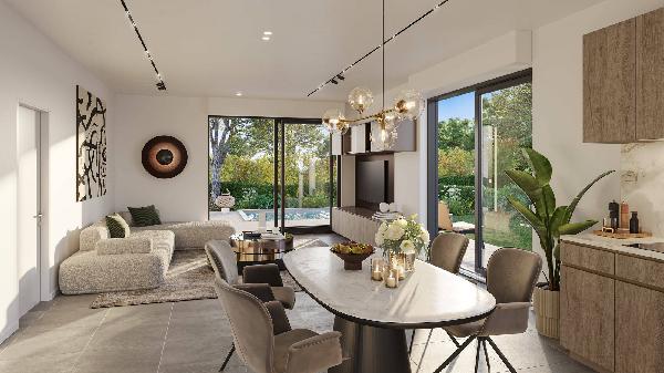 Ce projet immobilier neuf trouve son emplacement dans la zone Nord-Ouest d'Aix-en-Provence, à seulement un quart d'heure du cœur historique de la ville. Il propose un design contemporain et raffiné, incorporant un équilibre parfait entre une variété d'appartements allant du 2 au 4 pièces et des villas spacieuses de 4 et 5 pièces. Ce complexe résidentiel haut de gamme arbore un magnifique îlot central verdoyant et vise avant tout le confort de ses résidents. Les espaces ont été conçus pour optimiser surfaces, incluant entre autres, des placards aménagés. Les pièces de vie, grâce aux baies vitrées coulissantes, se prolongent sur de charmants espaces extérieurs tels que des balcons ou terrasses. Les habitations profitent d'une double orientation qui permet une excellente luminosité naturelle. Concernant les villas en duplex, elles se présentent comme un véritable cocon de confort. Elles ajoutent à ce cadre de vie enchanteur une piscine privée (incluse dans le prix d'achat) nichée dans un jardin privé. Si vous le souhaitez, vous pouvez même y ajouter un jacuzzi ! Quoi de mieux pour se détendre et jouir du climat méditerranéen en famille.La résidence est entièrement protégée et selon les options choisies, elle propose des garages ainsi que des places de parking extérieures.