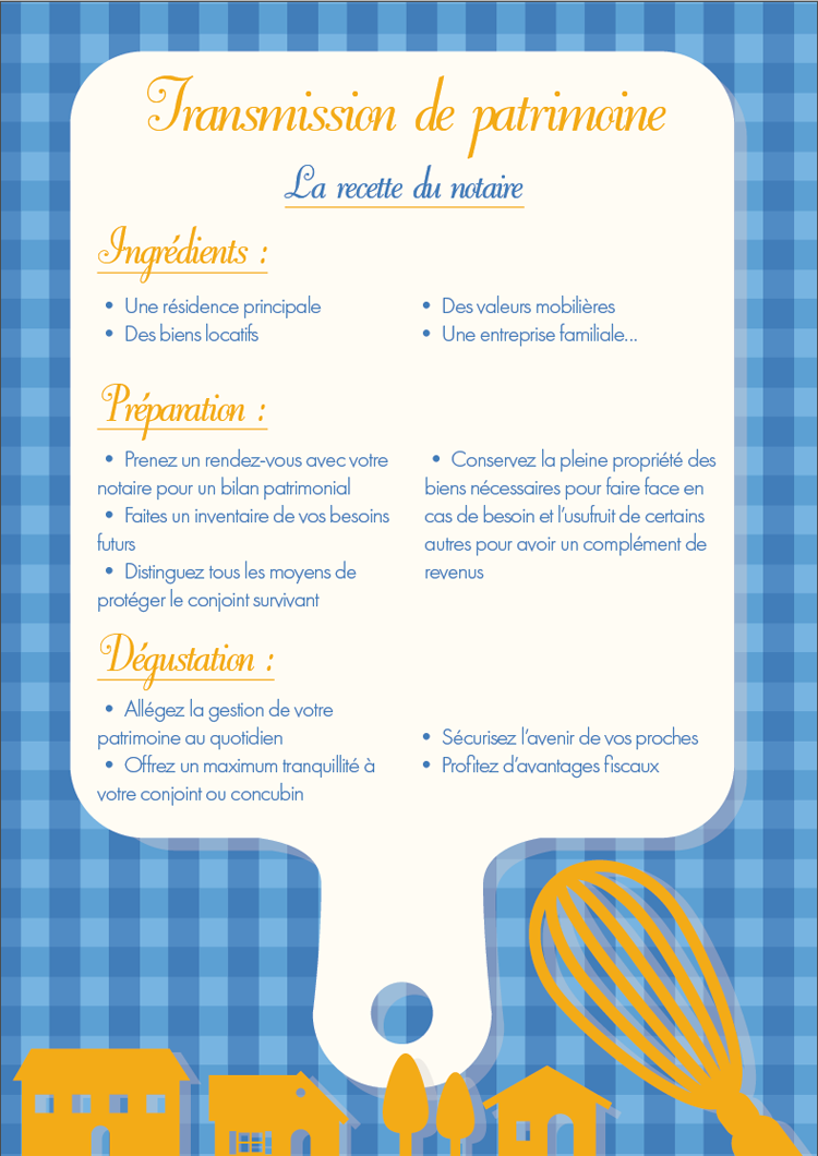 Transmettre son patrimoine ne s'improvise pas. À l'image d'une recette de cuisine, cela nécessite de la réflexion, du temps, la maîtrise de tous les "ingrédients" nécessaires et l'accompagnement d'un professionnel.